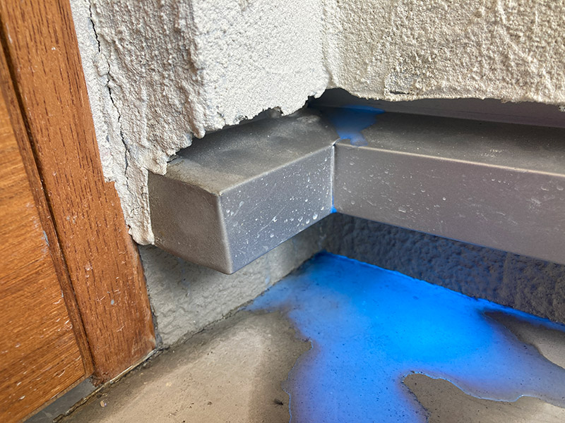 雨水が浸入しそうな箇所から紫外線に反応する発光検査液を散水し、紫外線ライトで照らして浸入口を特定する方法です。