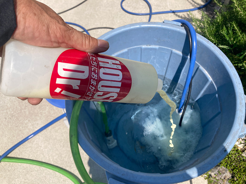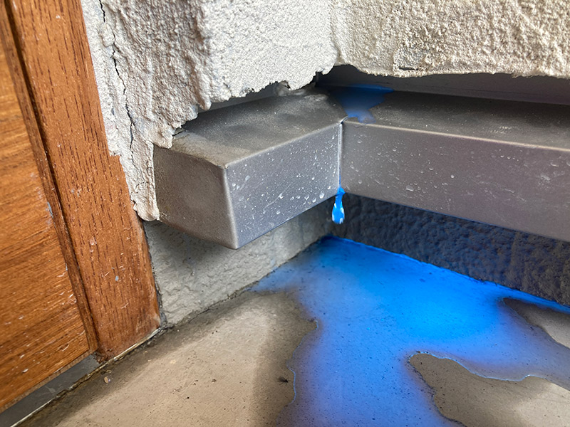 それにより試液が青く発行し雨漏りしている箇所をお客様に確認していただけます。