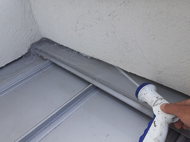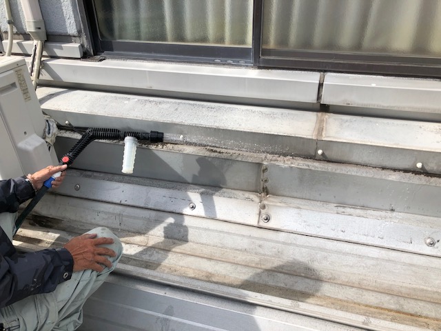 実際に散水して、検査を行います。一箇所の散水時間は、最大1時間を目安としますが建物の構造によって異なります。
